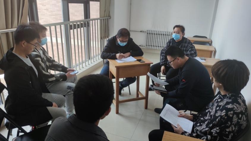 紧接着,赵志强和刘慧慧与负责人们进行细致全面的沟通交流。一方面,认真听取临时党支部书记张友浩有关19号楼值班情况的汇报,倾听党员们在开展工作时遇到的问题和诉求;另一方面,了解线上教学期间学生生活学习情况,关注学生生活需求。最后,两位老师针对临时党支部工作给出建议,党员干部要搭建起老师和学生的沟通桥梁,及时反馈,做好信息的传递。