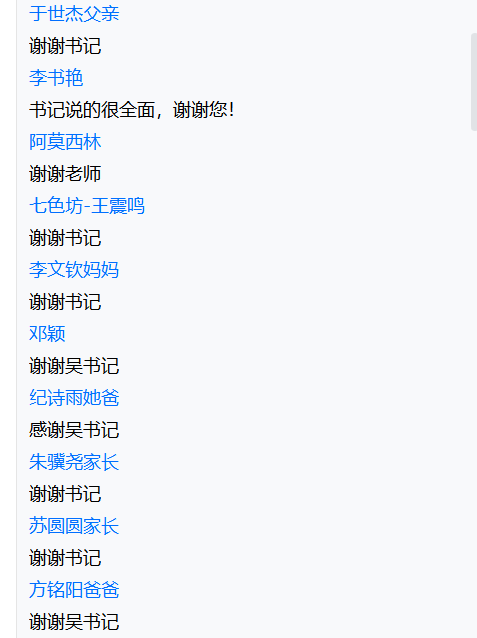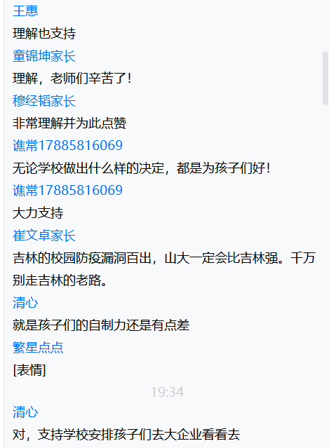 最后,吴晓晴就家长提出的有关校园封闭的问题进行了答复,希望与家长共同做好学生安全管理工作。家长们对校院领导、辅导员封控管理期间的辛勤付出表达了感谢,对学校就医暖心举措、应急药品绿色通道、学业帮扶、心理健康咨询和日常文体活动表达了充分肯定。