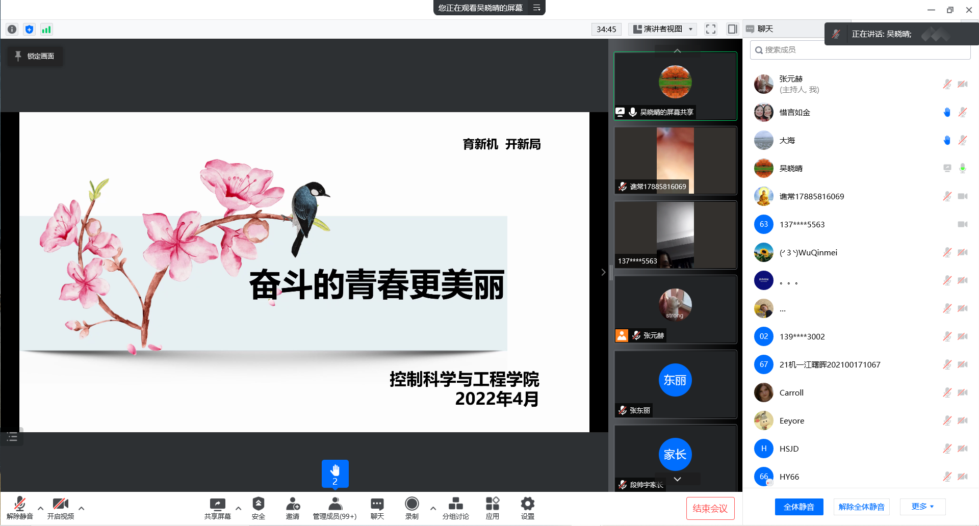 党委副书记吴晓晴出席会议并讲话,2021级辅导员张元赫主持会议,近三百余名家长线上参会。